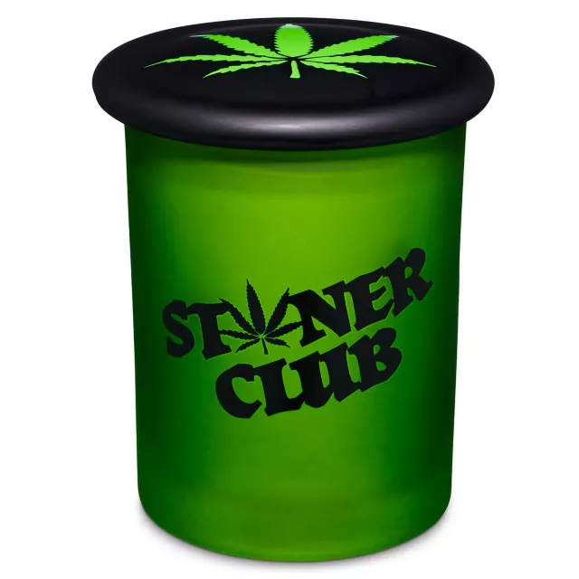 Keep your goods safe in this 11 oz. stoner club stash jar. This green jar has a convenient black lid to keep your small things safe.
