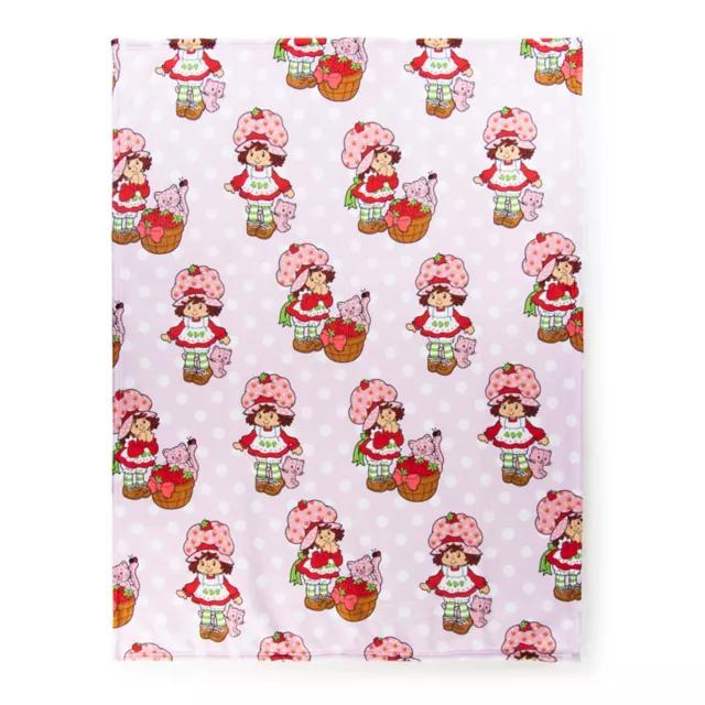 Enjoy some berry-sweet snuggles with this officially licensed Strawberry Shortcake Polka Dot Fleece Blanket! Made with ultra-soft fabric and a vintage-inspired polka dot print with illustrations of Strawberry Shortcake and her pet kitty, this exclusive throw blanket sweetens up any space.