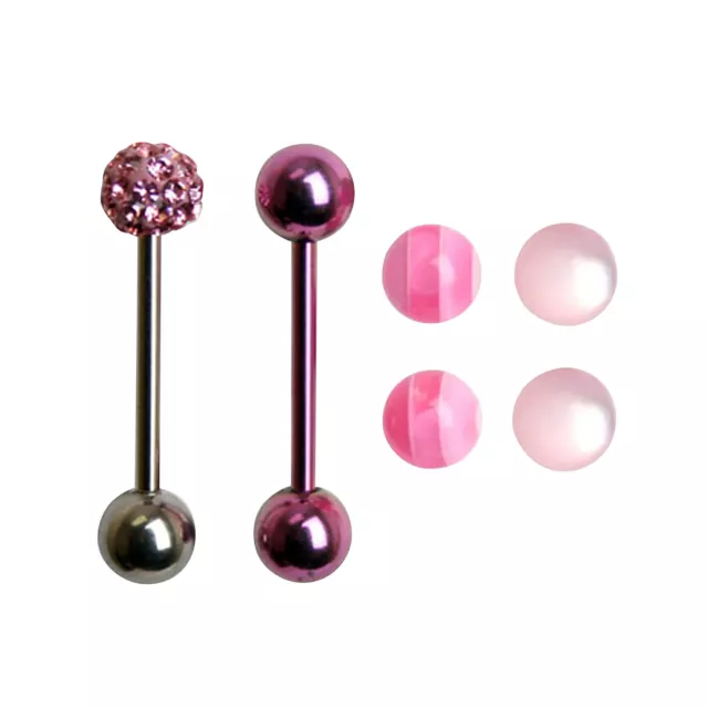 This pink stripe bling barbell set (with four extra balls) includes two piercings and is available in 14G; 7/16".
