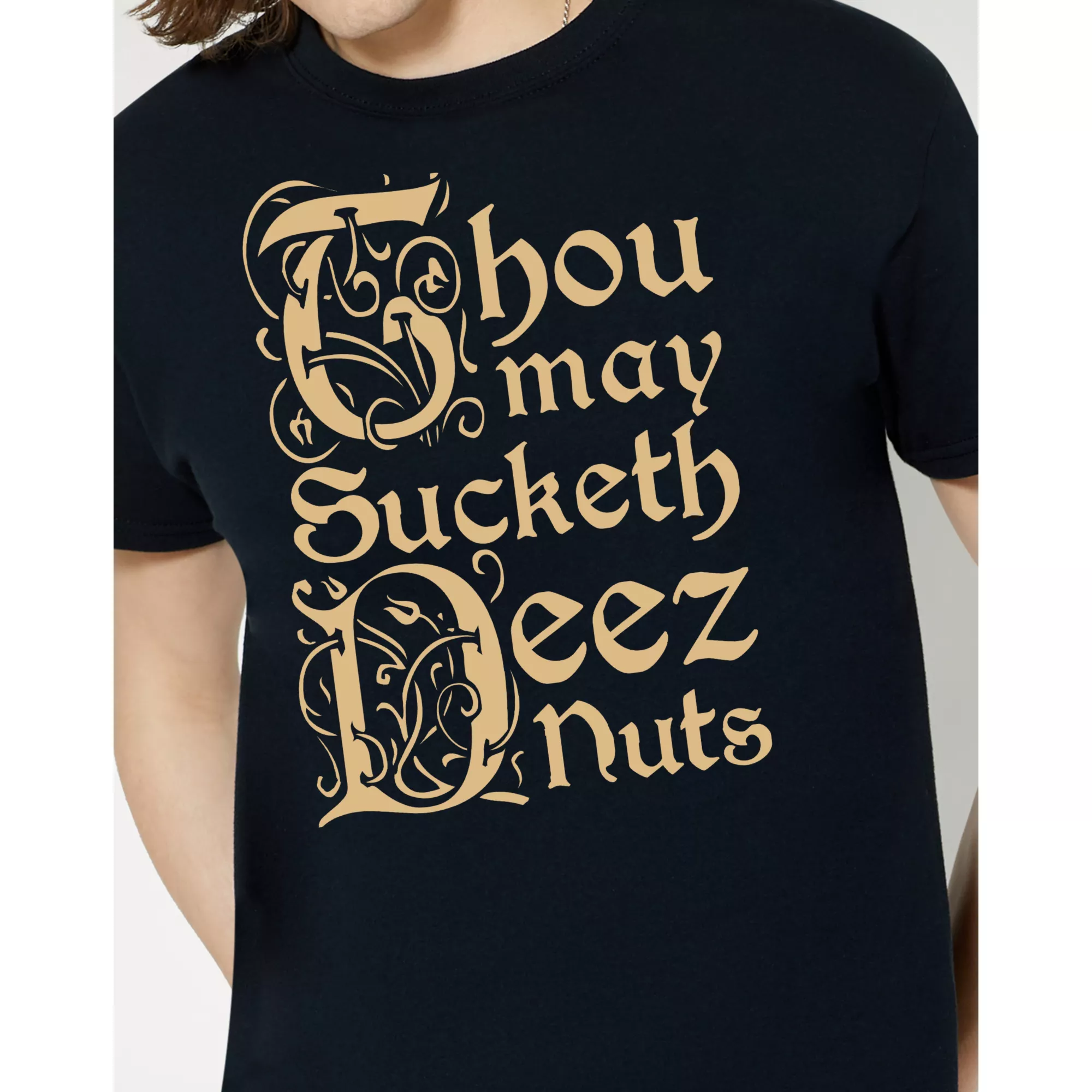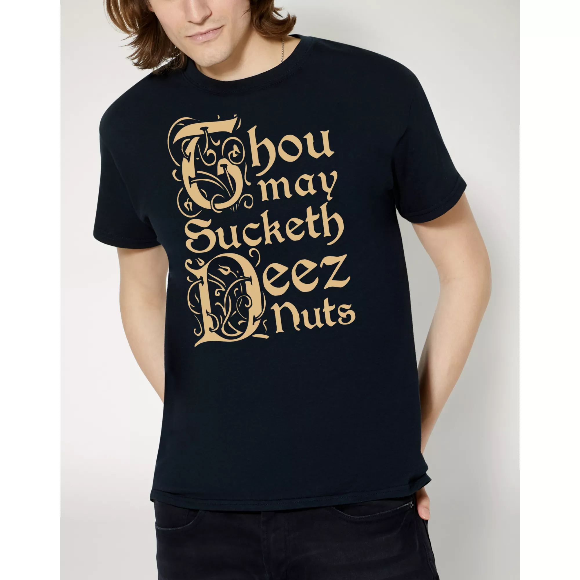Hoping to add a funny and fresh tee to your wardrobe? Show off your hilarious sense of humor and upgrade your look with this Sucketh Deez Nuts T Shirt.