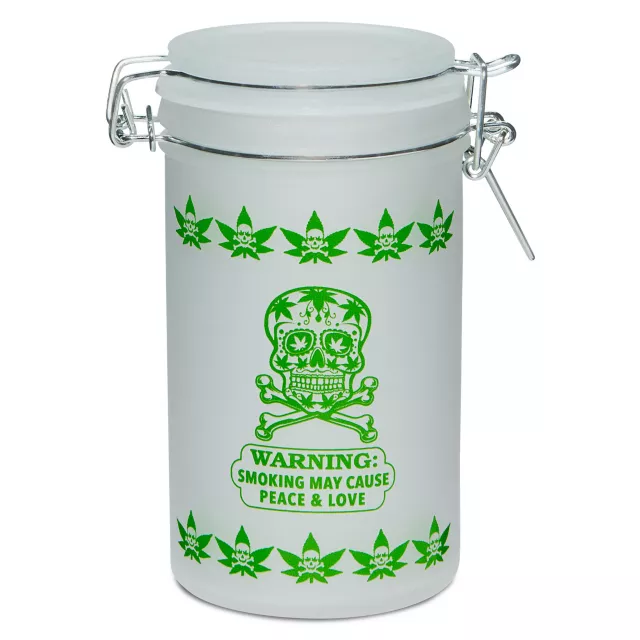 Store your most precious goods in this sugar skull stash jar! This jar is big enough to hold 16 ounces and will keep your goods airtight so they're available whenever you want them.