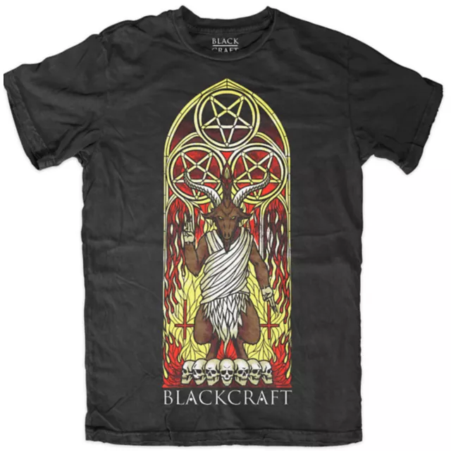 Show everyone that you're into worship with a darker twist when you suit up in this officially licensed Blackcraft Cult Sunday Sermon T Shirt. This tee's stylish, stained glass-inspired design is perfect for lovers of gothic fashion.