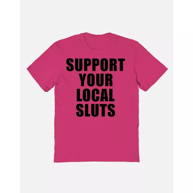 We don't slut shame in this house! Show your sluts that you stand in solidarity with them when you're rockin' this hot pink Support Your Local Sluts T Shirt.