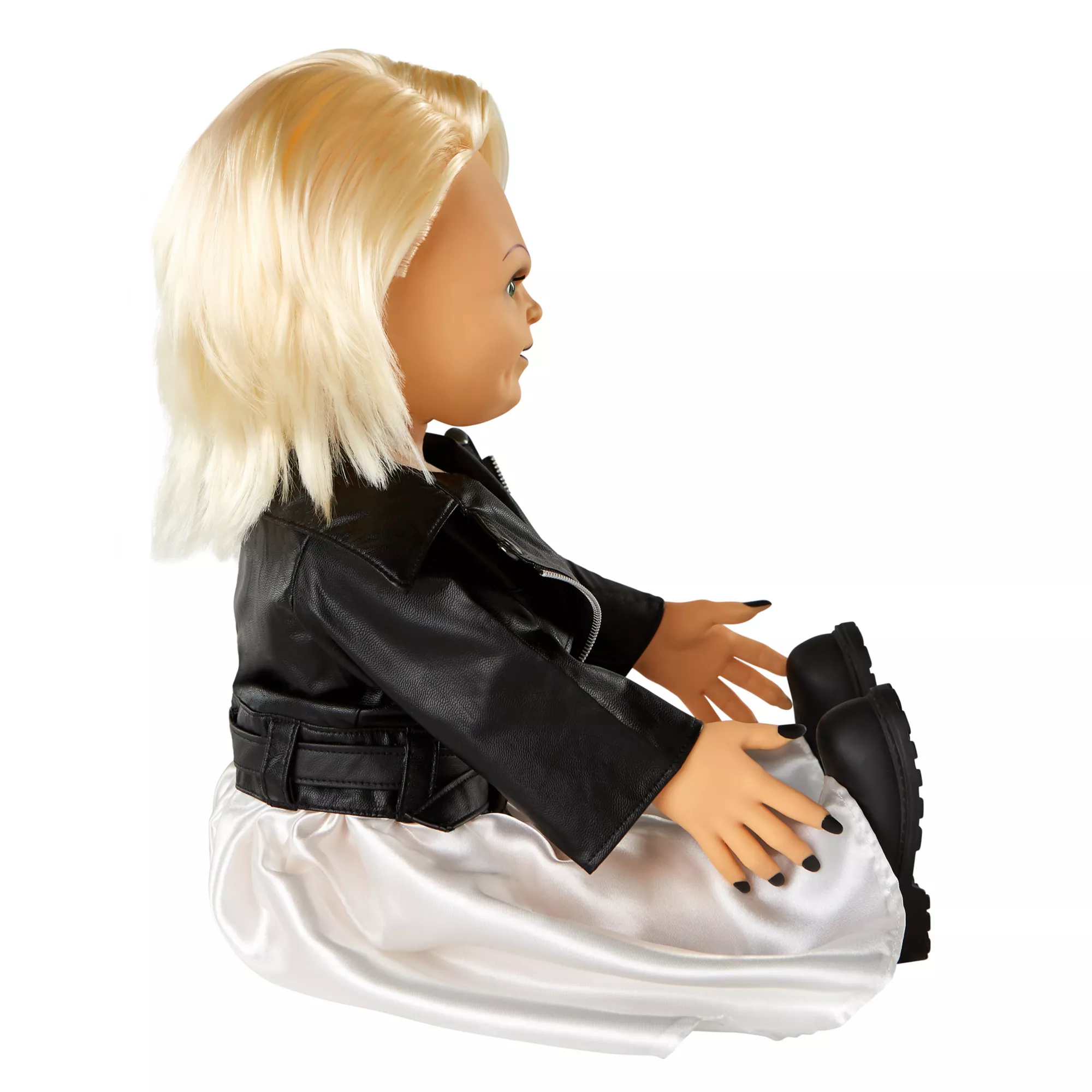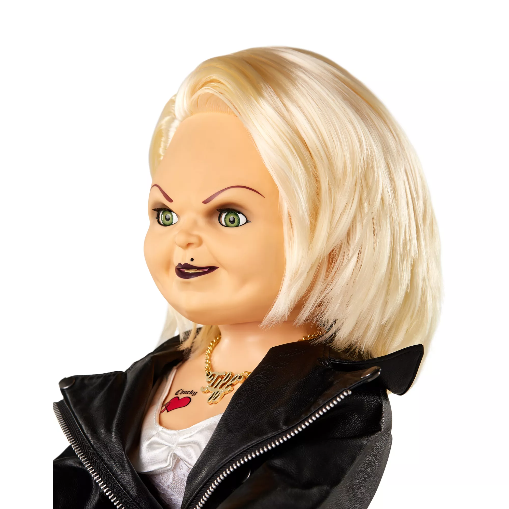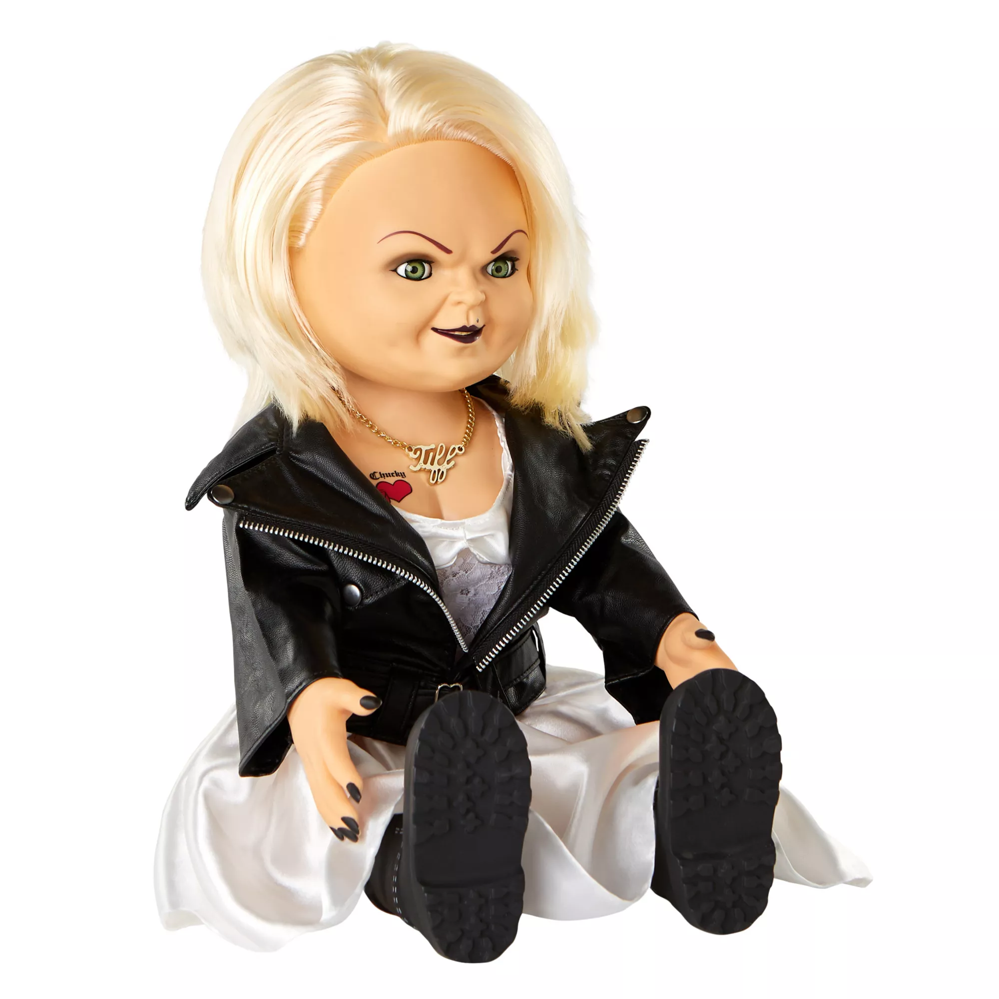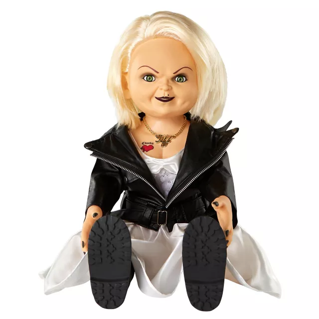 A true classic never goes out of style! This talking Tiffany doll is the perfect addition to every horror buff's collection. With her signature white dress, black jacket and authentic chest tattoo, this Tiffany doll looks just like the real deal.