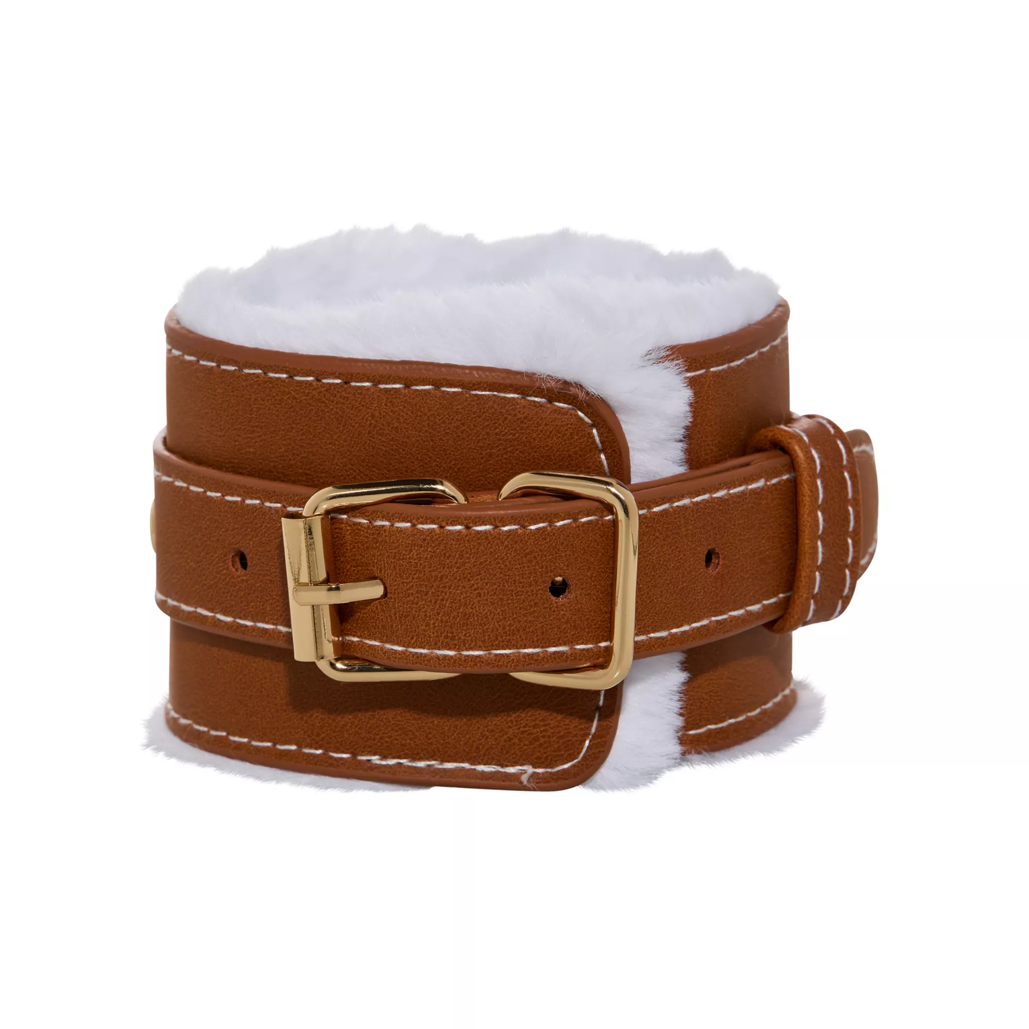 Make your bondage play even more thrilling with these tan and white furry handcuffs! These adjustable bondage restraints are the perfect way to get kinky and enjoy the excitement of immobilization. With their furry texture inside, no matter how hard you tug, you'll still feel incredible.