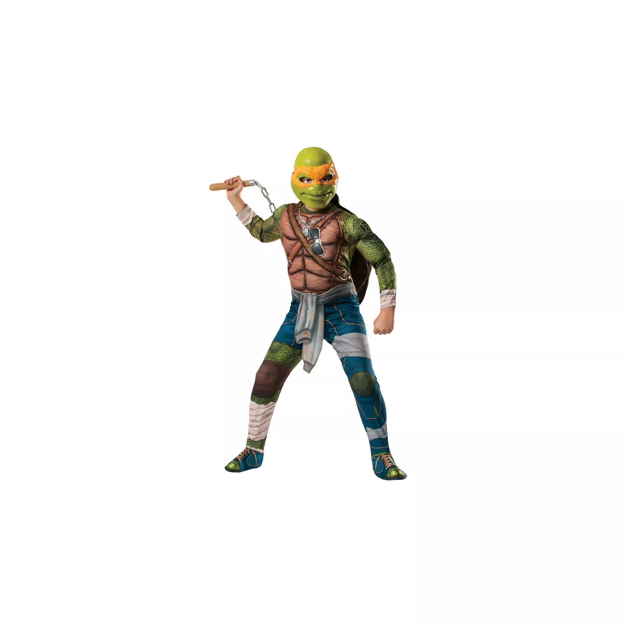 It's cowabunga time! The Officially Licensed Teenage Mutant Ninja Turtles Movie Michelangelo Adult Costume will have you fighting crime in no time. Features a muscled jumpsuit, stuffable shell and face mask with orange eye mask detail.