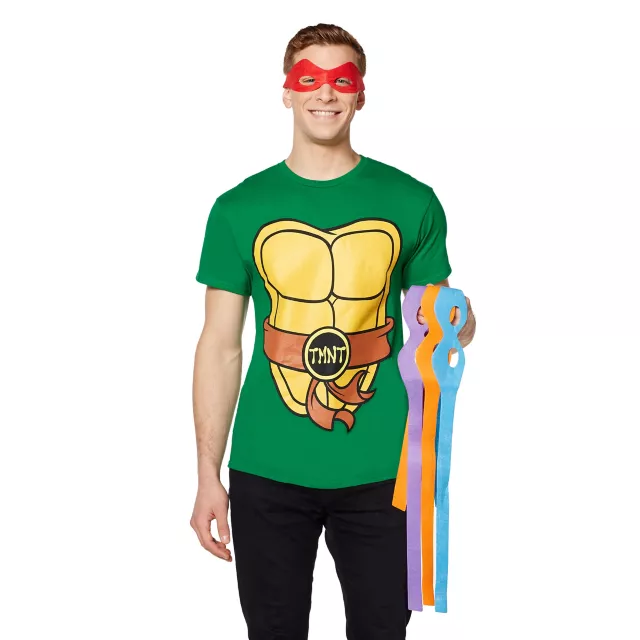 Be practical and resourceful on Halloween when you wear this comfortable and convenient officially licensed Teenage Mutant Ninja Turtles mens T-Shirt; it includes different color masks so you can be in or out of costume whenever you want.