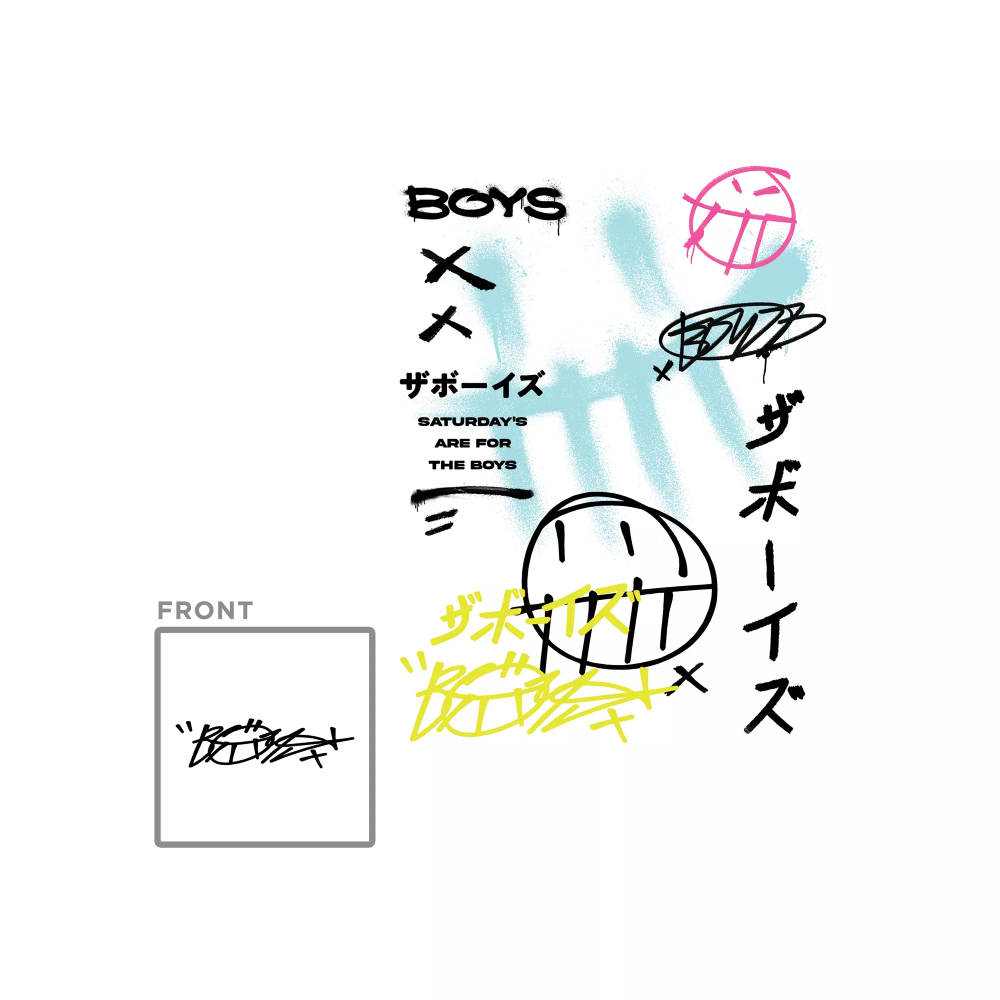 Show off your fandom with this official The Boys 2 Saturdays t shirt! This bold white graphic tee is sure to be a conversation starter whenever you wear it.
