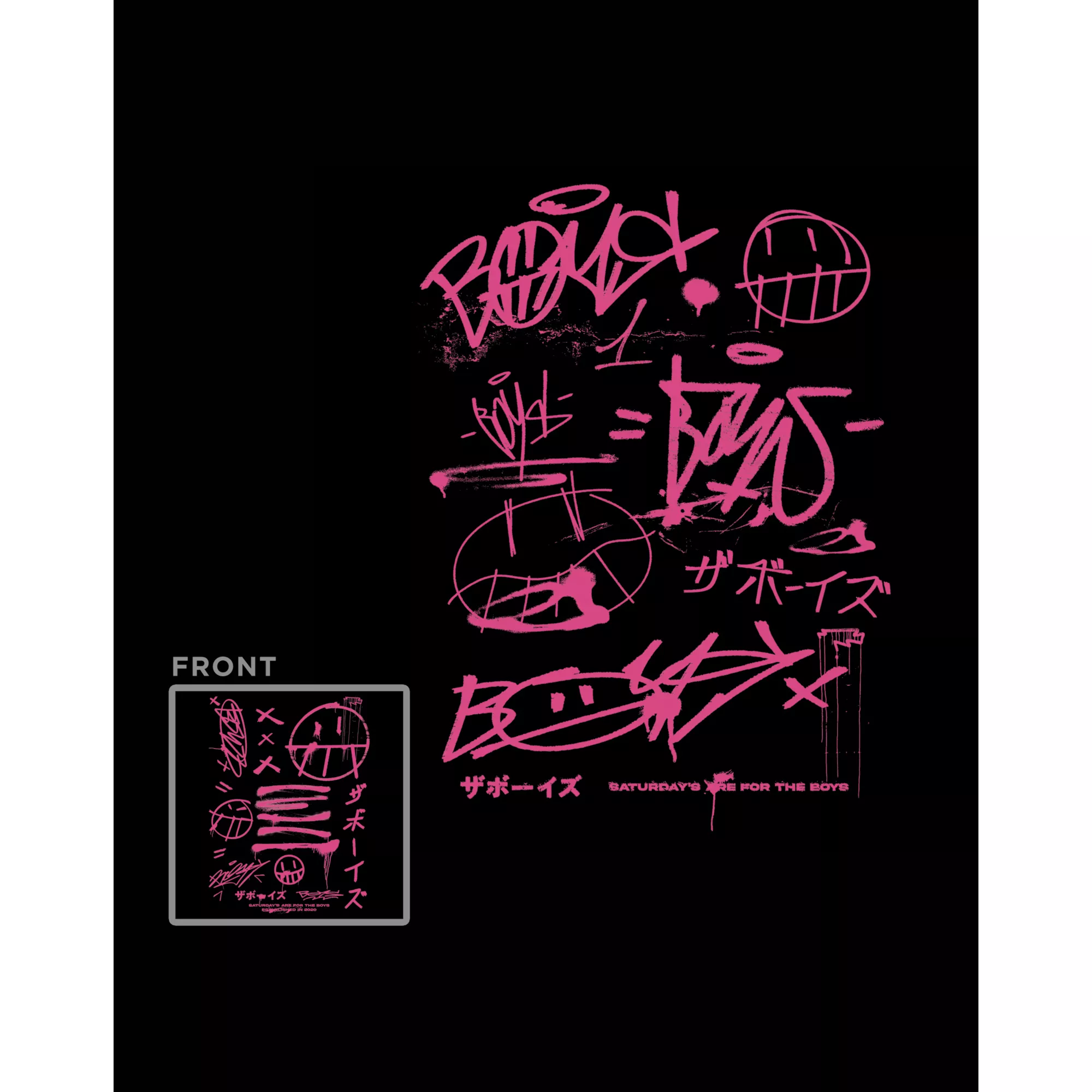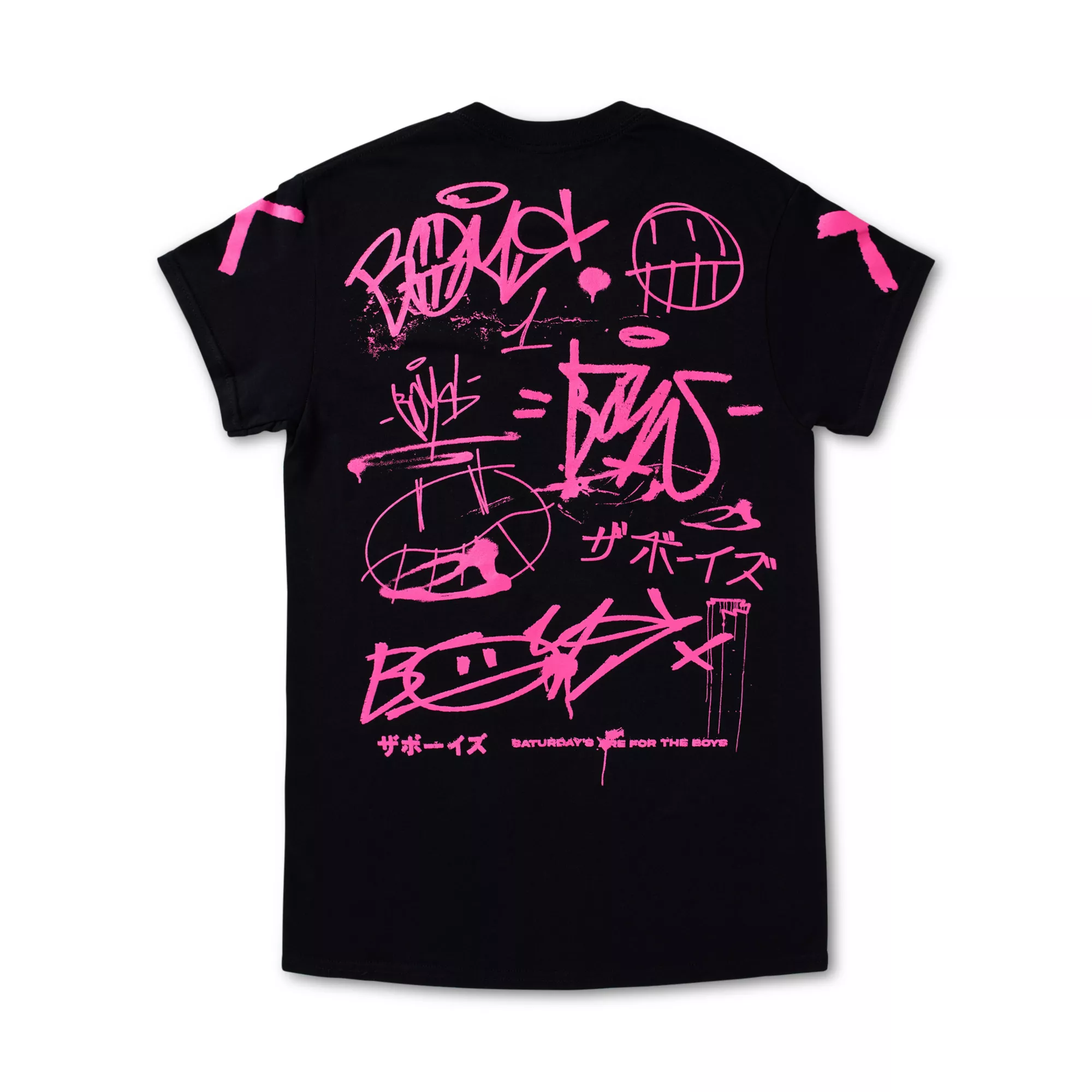 Represent your favorite content creatures with this officially licensed The Boys T Shirt. This shirt features the iconic The Boys doodles in a pink spray paint style on the back and front. Everyone will know whos channel you're binging when you're wearing this shirt.