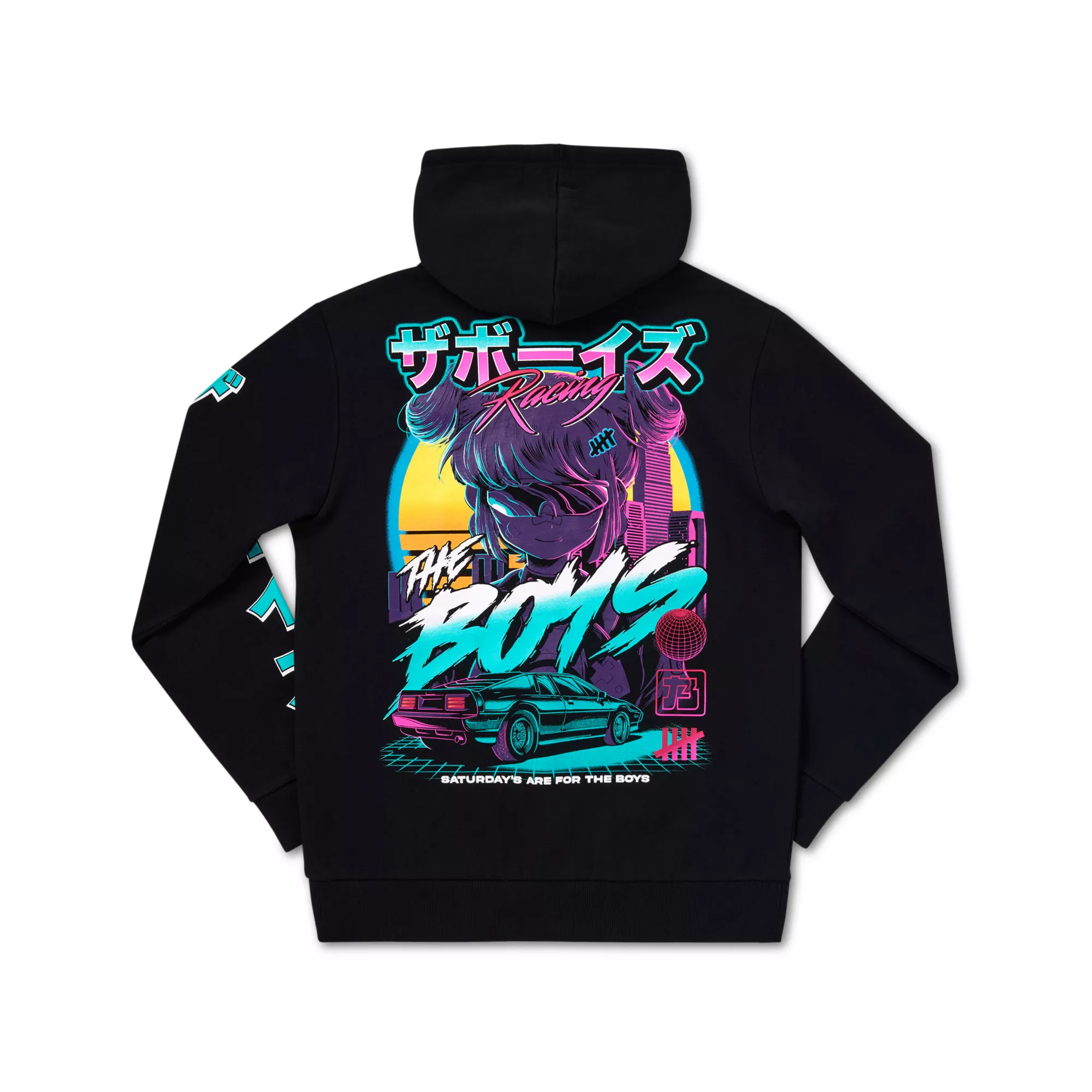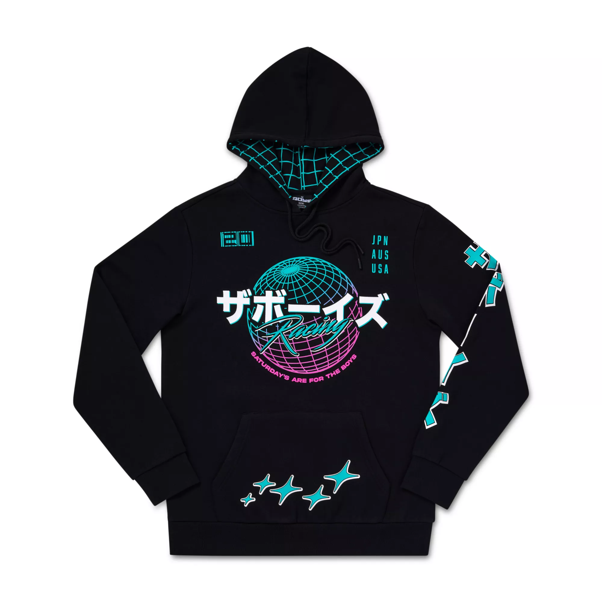 Let everyone know that Saturdays are for the boys with this officially licensed The Boys Racing Globe Hoodie! This comfy hoodie's soft fabric and striking designs make it an absolute must-have.