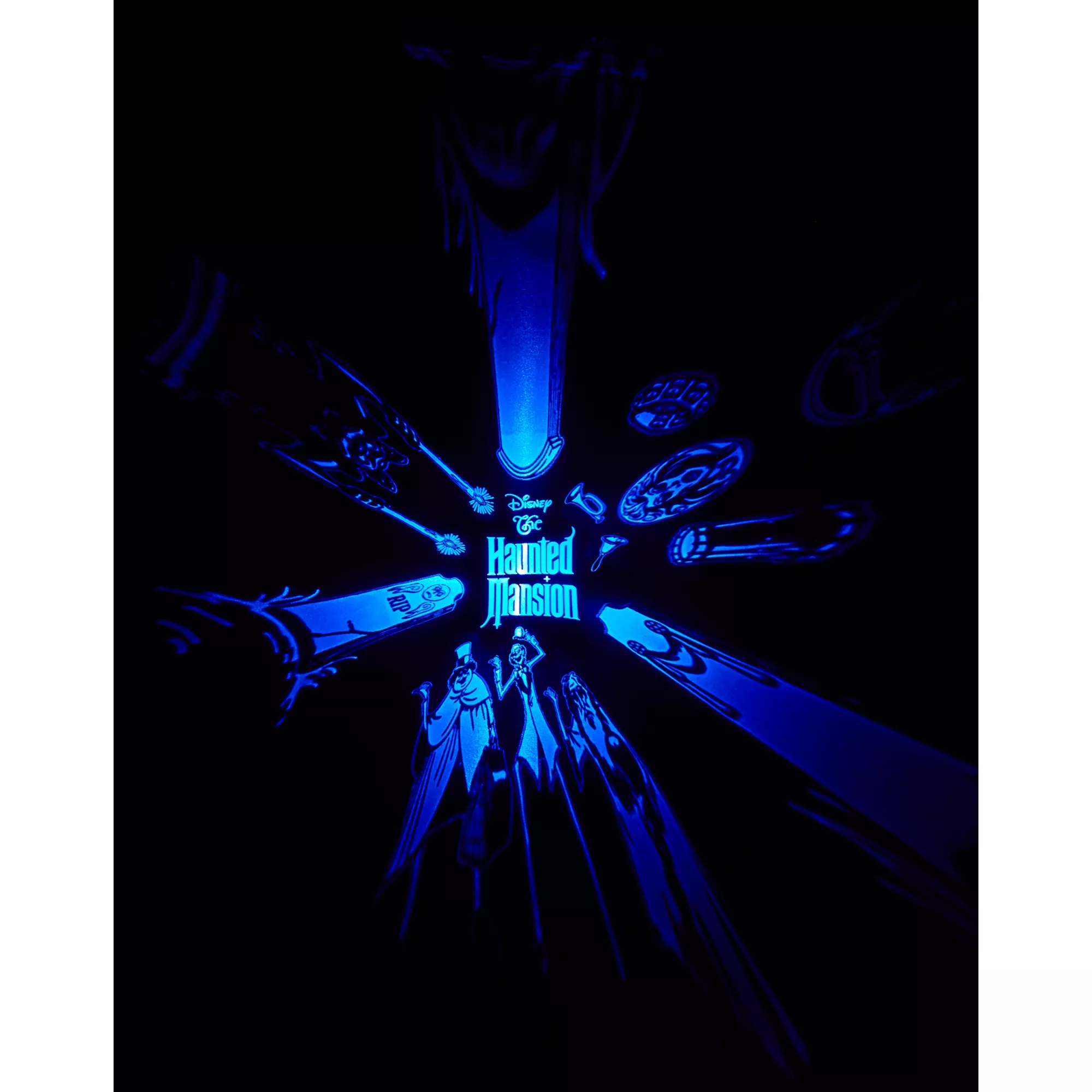 Watch as a spooky scene unfolds upon your walls with this The Haunted Mansion tabletop projection light! This compact projector sends eerie images from The Haunted Mansion soaring across any room, filling your space with singing busts, hitchhiking ghosts, and more.