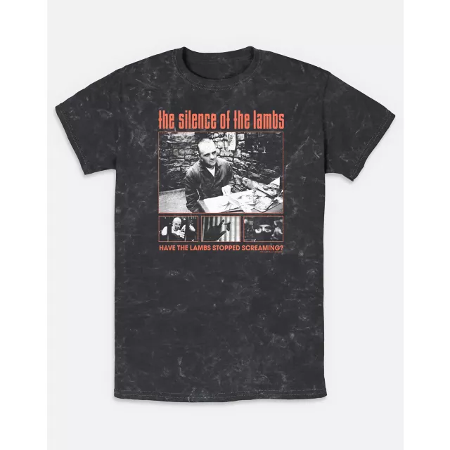 Have the lambs stopped screaming? Let everyone know that you're the ultimate horror fan with this officially licensed The Silence of the Lambs T Shirt! This tee's washed fabric and movie panel decals make it an absolute must for your wardrobe.