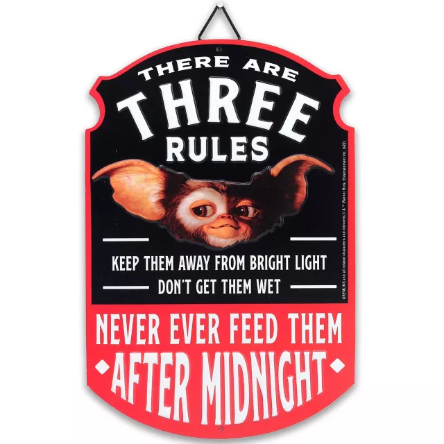 Show off your love for Gremlins when you hang this officially licensed Three Rules Sign in your home! Celebrate your favorite horror movie and make sure to always follow the rules. NEVER feed them after midnight!