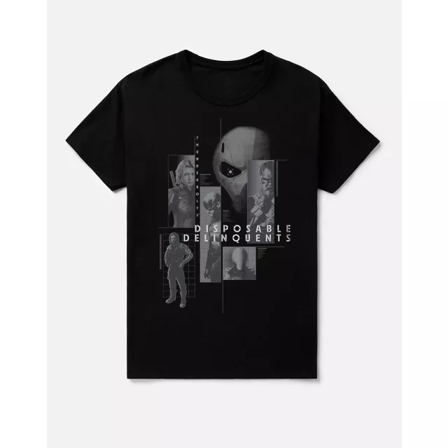 Add some antihero style to your wardrobe! Rep your new favorite Marvel movie with this officially licensed Thunderbolts Disposable Delinquents T Shirt.