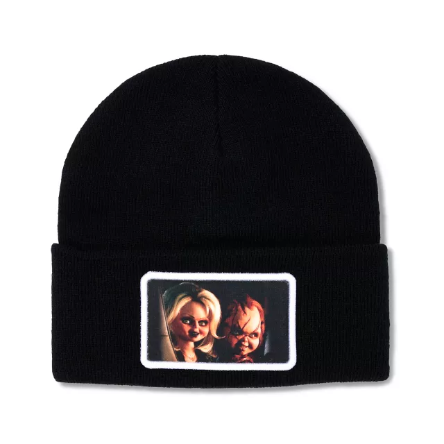 Show off your horror fandom with your next outfit when you rock this officially licensed Tiffany Cuff Beanie Hat as part of your style. This cuff beanie feature's horror's favorite power couple Chucky and Tiffany on it and will make a great addition to any Chucky fan's collection.