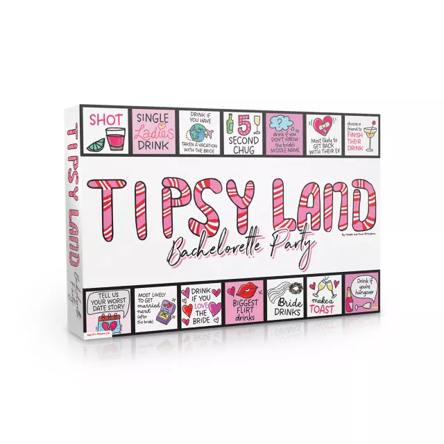 Gather your besties and get ready for the best night ever with the Tipsy Land Bachelorette Party game! Tell your worst date story, chug for 5 seconds, and more with this party-starting board game. Perfect for bachelorette parties small and large, this memorable game can be played with as many people as you want!