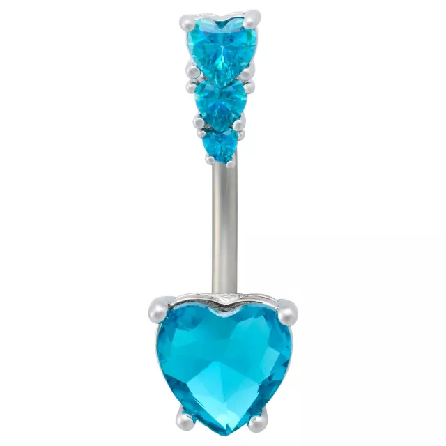 Titanium CZ Turquoise Heart Belly Ring - 14 Gauge
