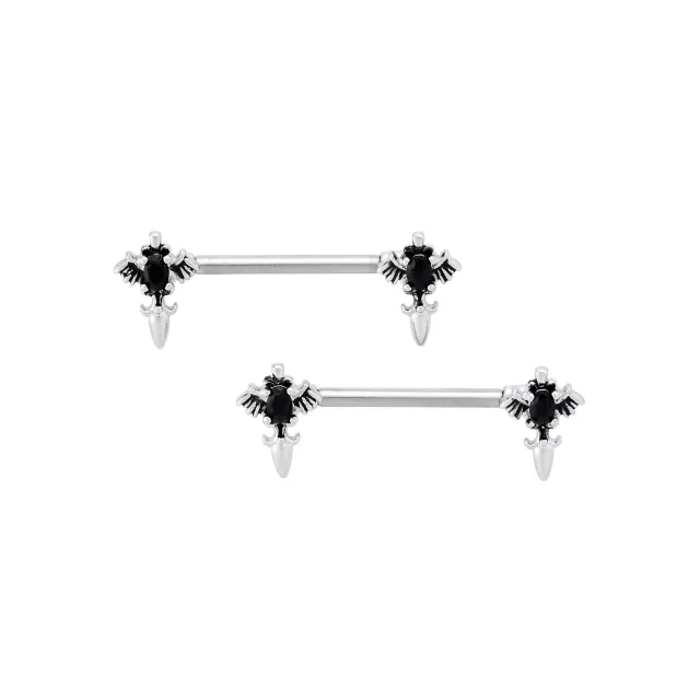 Titanium Silver and Black Cross Nipple Barbells - 14 Gauge
