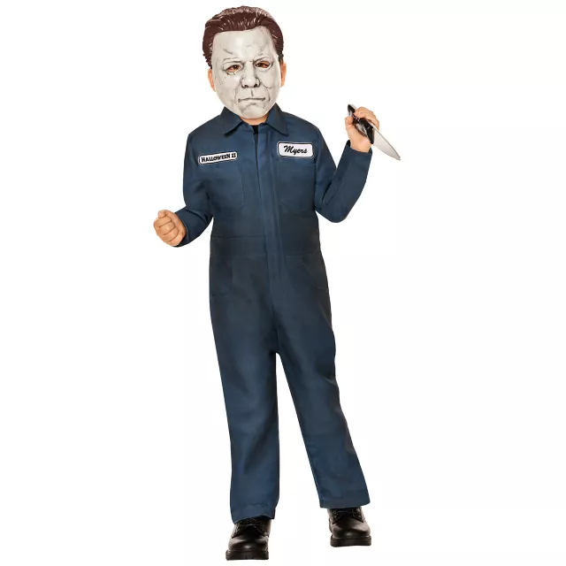 Your child will transform into a sweet little slasher in this Michael Myers costume! Inspired by the chilling killer from Haddonfield, this costume includes a blue jumpsuit with "Halloween II" and "Myers" chest patches, plus a creepy Michael Myers mask to finish the look.