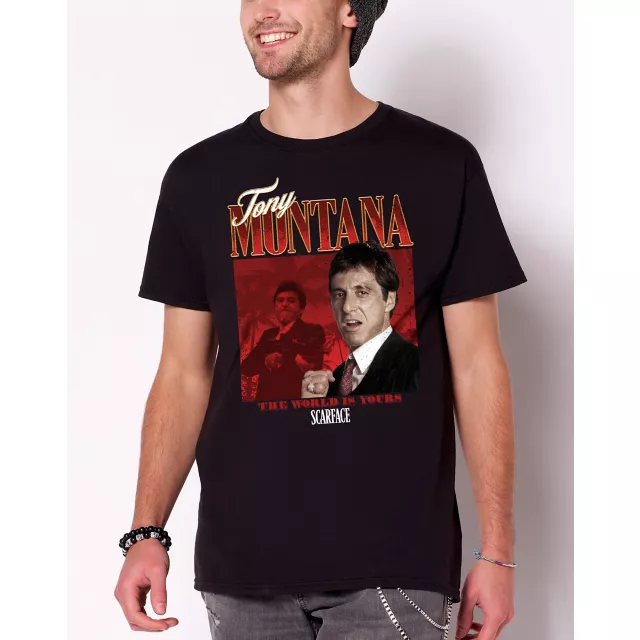 Make the world yours for the taking in this officially licensed Tony Montana T Shirt. If you're a fan of the classic movie Scarface then you'll love rocking this cool t shirt as part of your casual look.