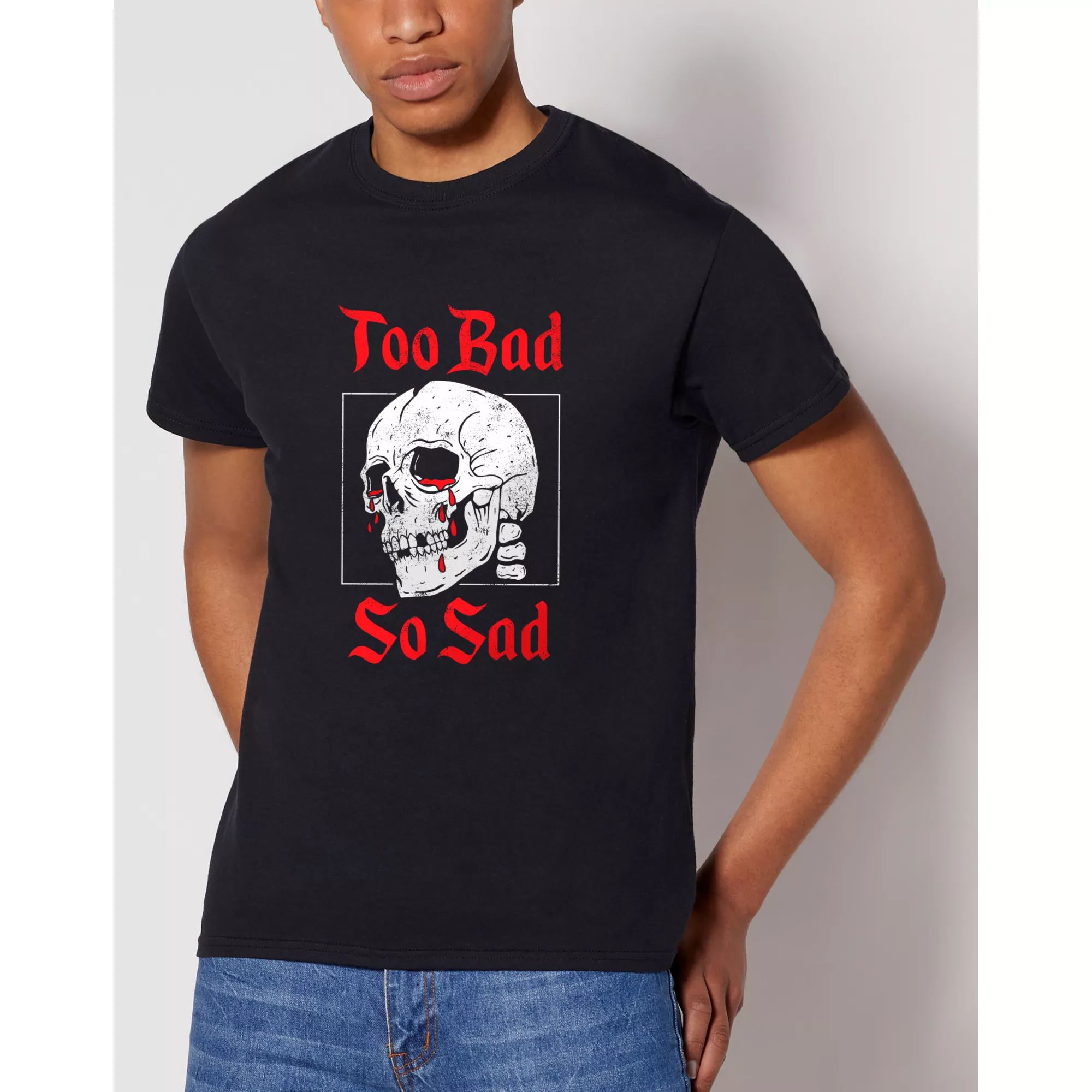If you’re looking for a shirt that’s both cool and deep, you’ve come to the right place. The Too Bad So Sad T Shirt has an image of a skeleton crying tears of blood. We all know what that feels like, right?