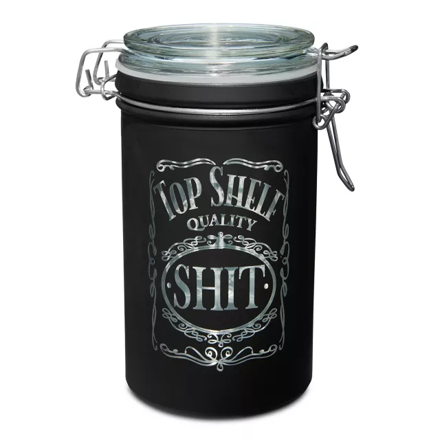 Store your secret stash where no one will find it in this Top Shelf Quality Shit Stash Jar! This 16-ounce jar features an air-tight lid with a latch closure, so your goodies will stay fresh and flavorful.