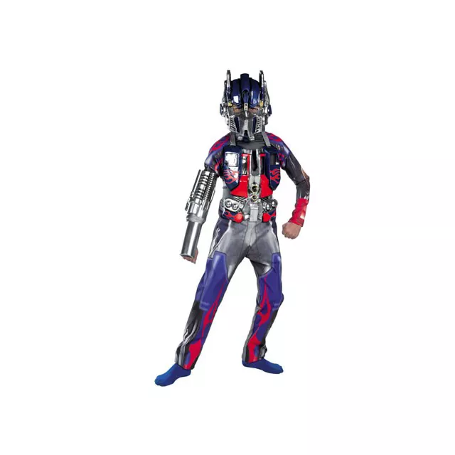 Autobots Roll Out! Take Megatron by storm in this officially licensed Transformers Optimus Prime Movie Deluxe child costume. The grey, red and blue, 100% polyester character-inspired full jumpsuit comes complete with a matching chest piece, toy arm weapon and a character mask.