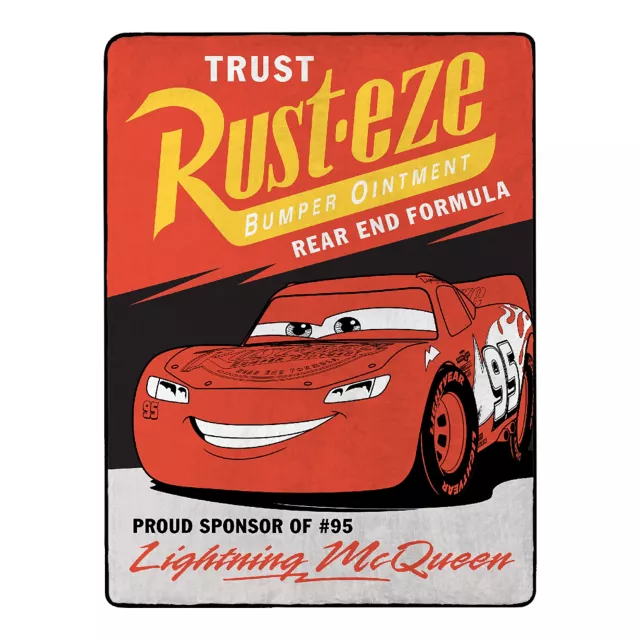 Fuel up on comfort! This officially licensed Trust Rust-Eze Lightning McQueen Fleece Blanket is here to keep you cozy and revved up for any adventure.