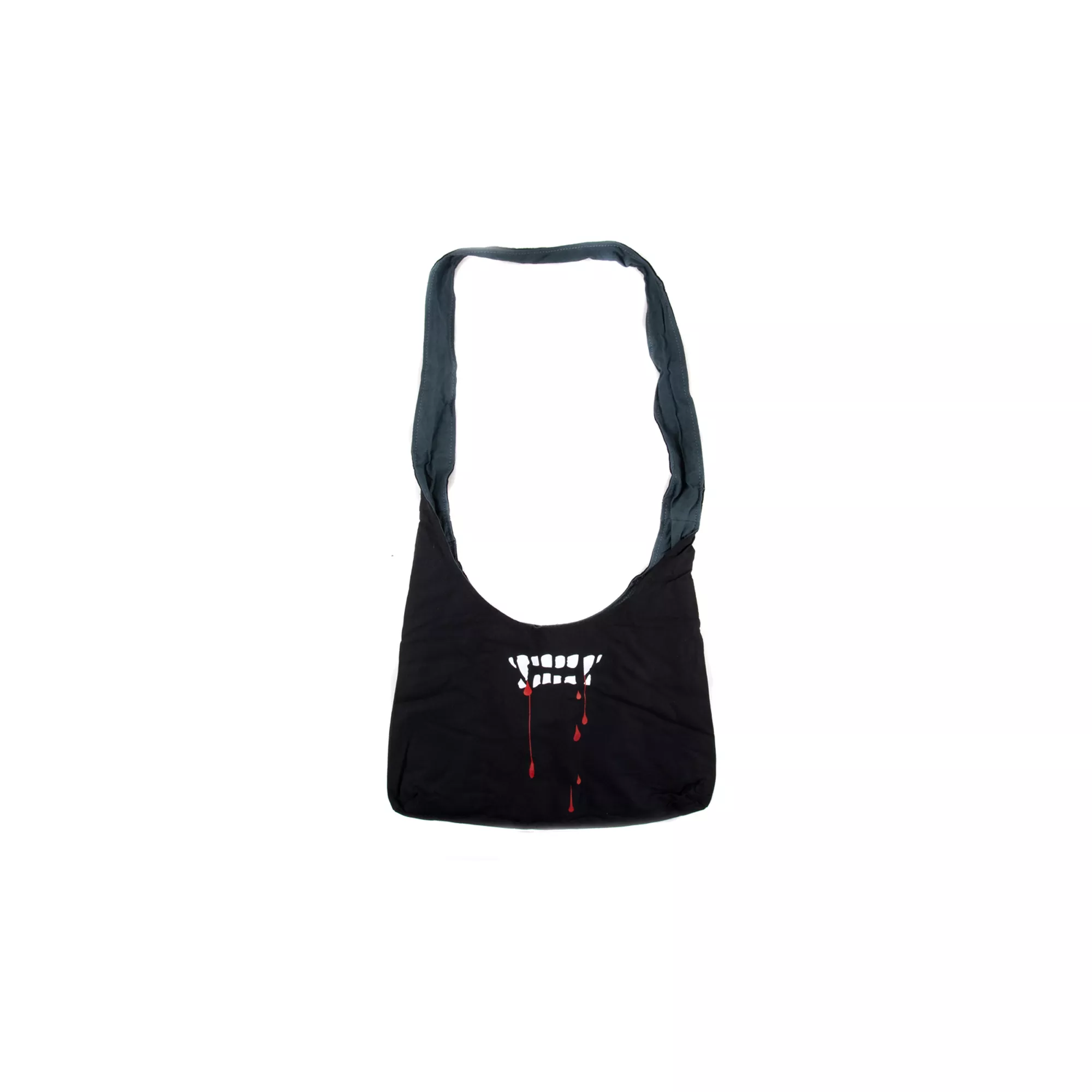Sometimes less is more, and the suggestion of something evil is even more terrifying than the reality. Scare up some Halloween fun with this jet-black Vampire Crossover Body Bag - all you see are the white teeth dripping red blood!