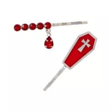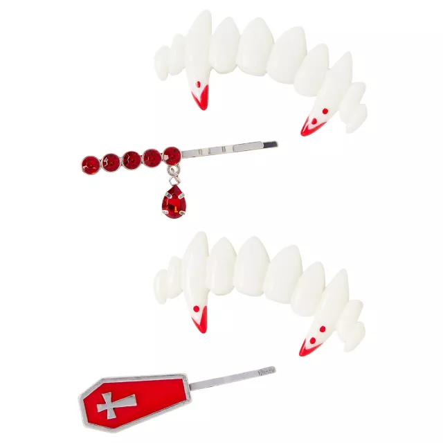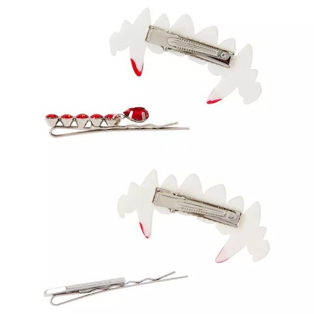 Complete any spooky hairstyle in seconds with these Vampire Teeth Hair Clips. Add these clips to your hairstyle this Halloween and you'll be ready for any Halloween party and look just like a vampire.