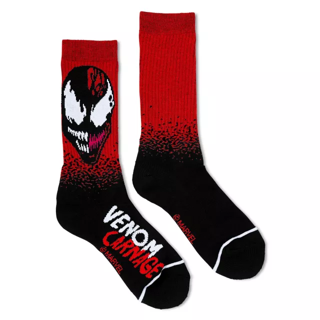 Add some flare to your favorite outfit when you rock these officially licensed Venom Carnage Athletic Crew Socks. These socks will let everyone know that your a massive fan of the Venom movies!