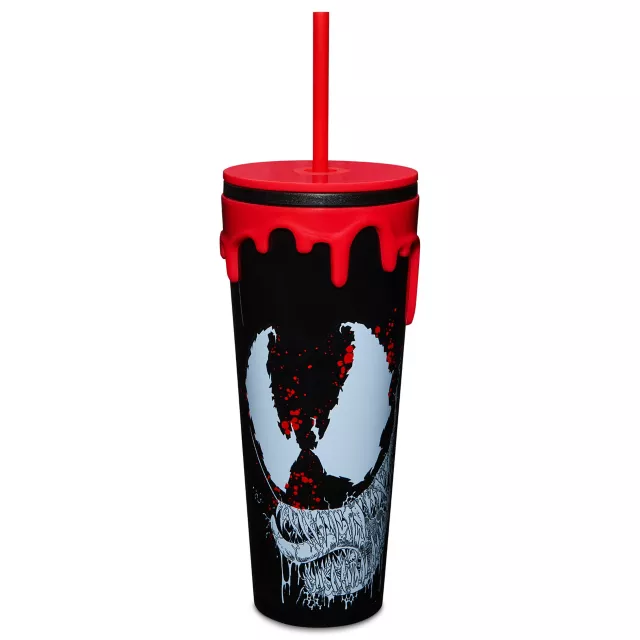 Hydrate in style and embrace your inner anti-hero with this officially licensed Venom-inspired travel cup. Featuring an action-packed design paired with a lid and straw, this product is perfect for enjoying your favorite beverage while celebrating the ultimate villain.
