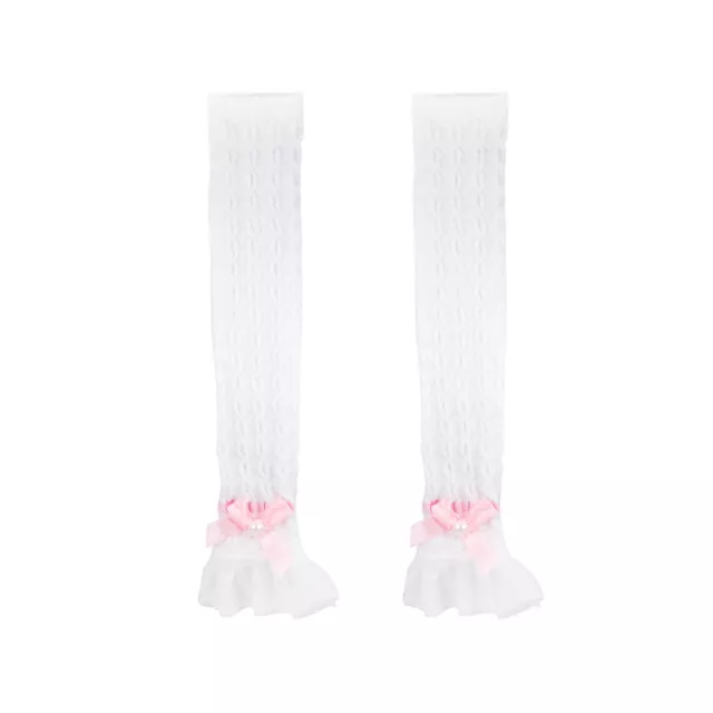 White Pink Bow Leg Warmers