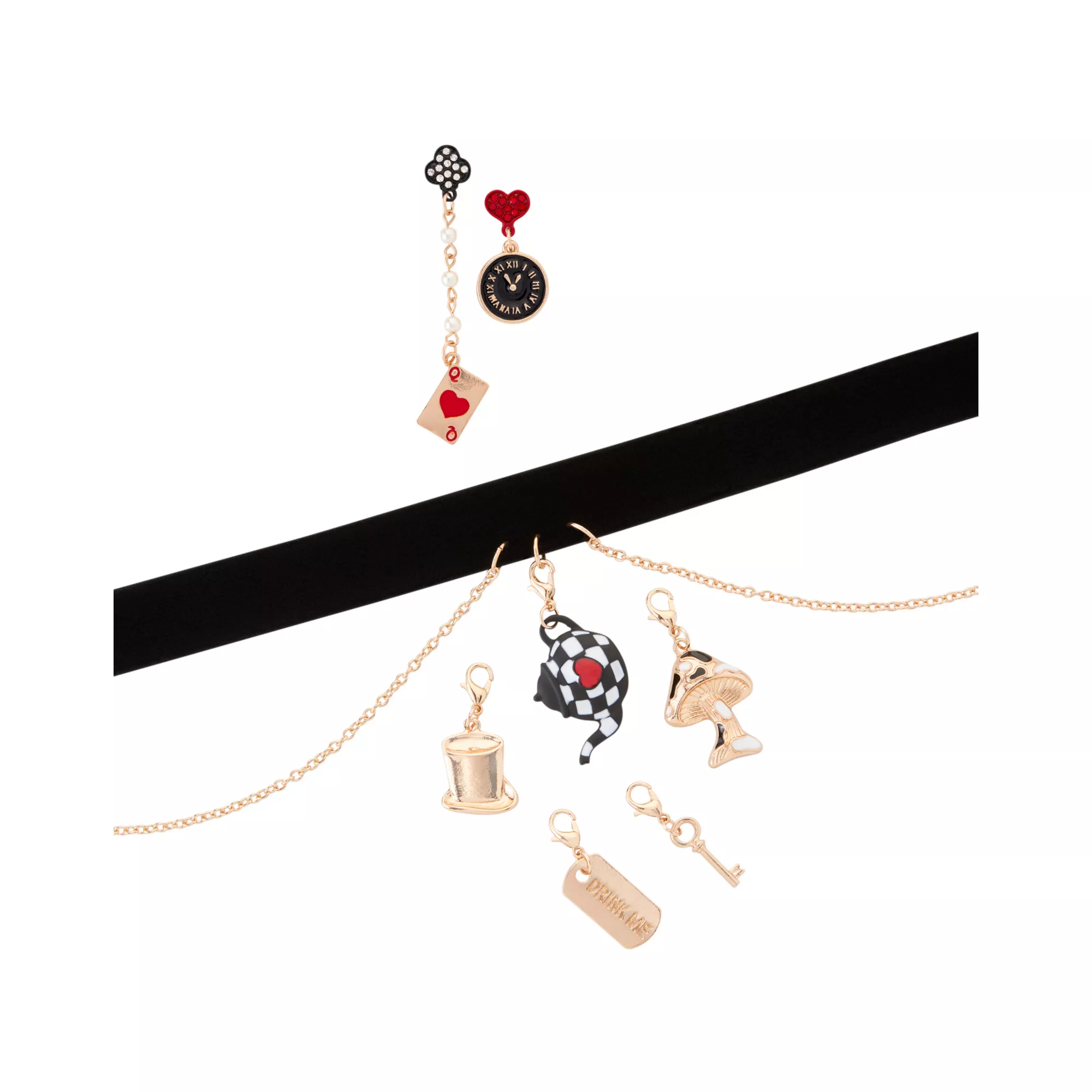 Take a trip down the rabbit hole this Halloween when you accessorize your costume with this Wonderland Jewelry Set. This whimsical set of jewelry features a set of earrings with interchangeable charms and a choker necklace that's sure to have you ready for a tea party.