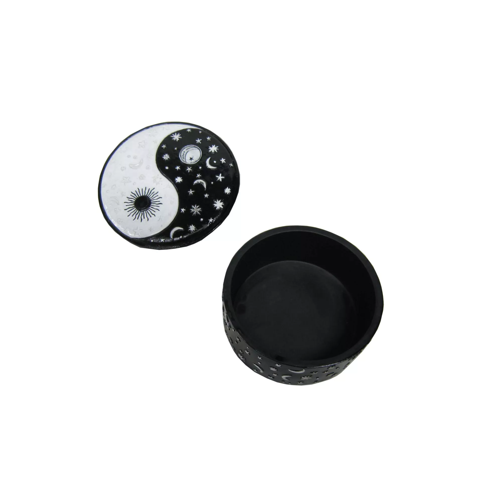 Keep all your most valuable trinkets safe and hidden when you store them in this Ying Yang Trinket Box. The stylish Ying Yang design makes this box a beautiful piece of decor to put in any room.