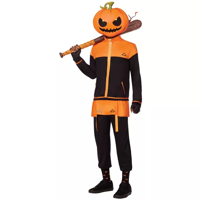 Show your Fortnite fandom with this epic Punk Costume! Featuring a black and orange jumpsuit, a pumpkin half mask, and matching socks, this officially licensed fit will have you looking like you came straight out of the Carving Crew. Once you suit up, you're sure to let everyone know you're going for a win.