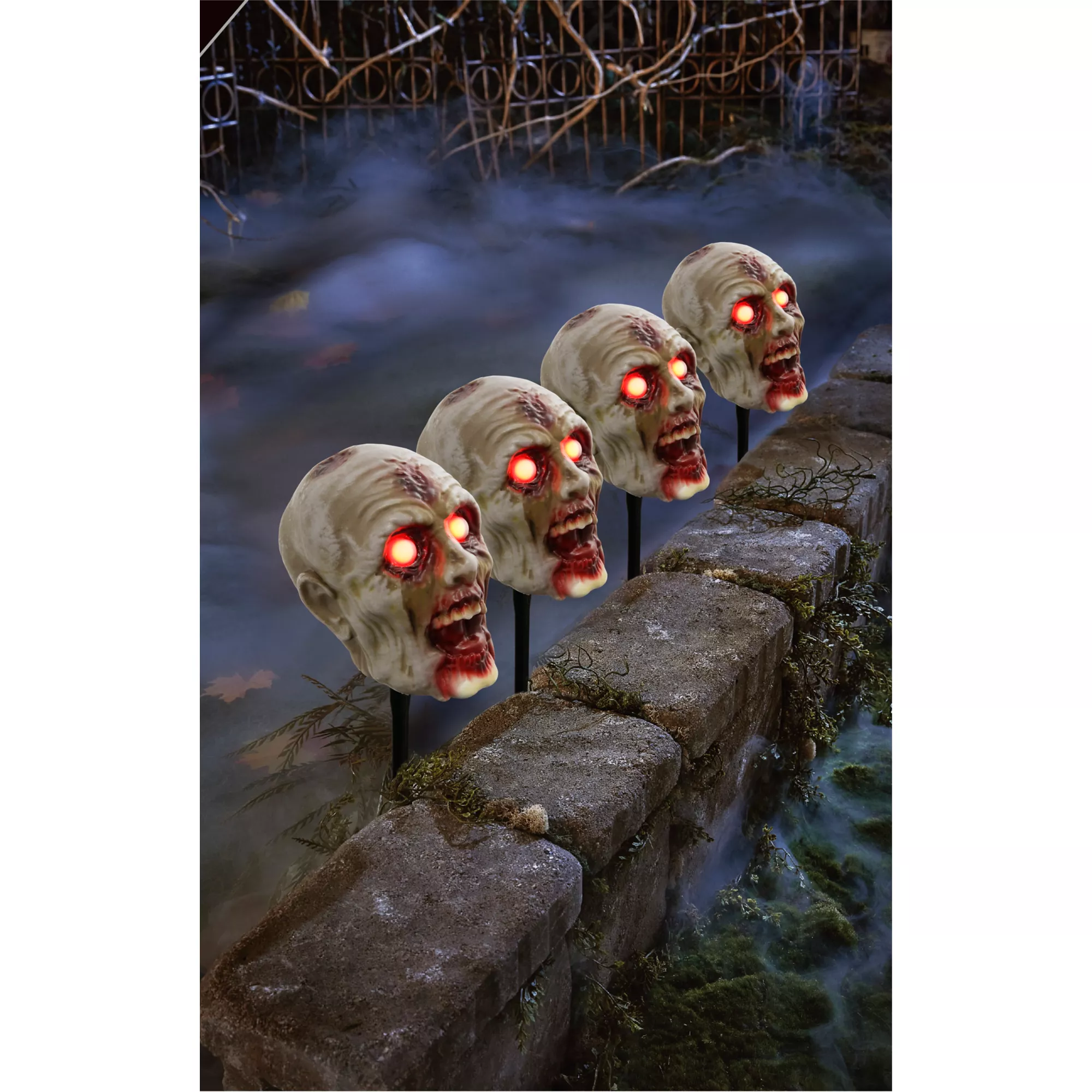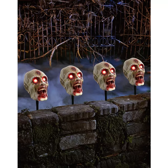 Make your walkway or driveway terrifically terrifying with these Zombie Head Pathway Markers. Each head has light-up eyes and makes haunting sounds when activated. They're the perfect way to set the spooky mood.